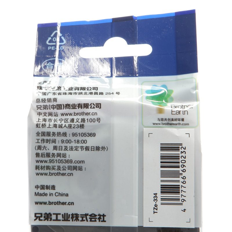 • 兄弟(brother) TZe-334 兄弟TZe-334 12mm黑底金字标签色带(适用所有兄弟P