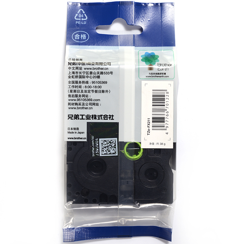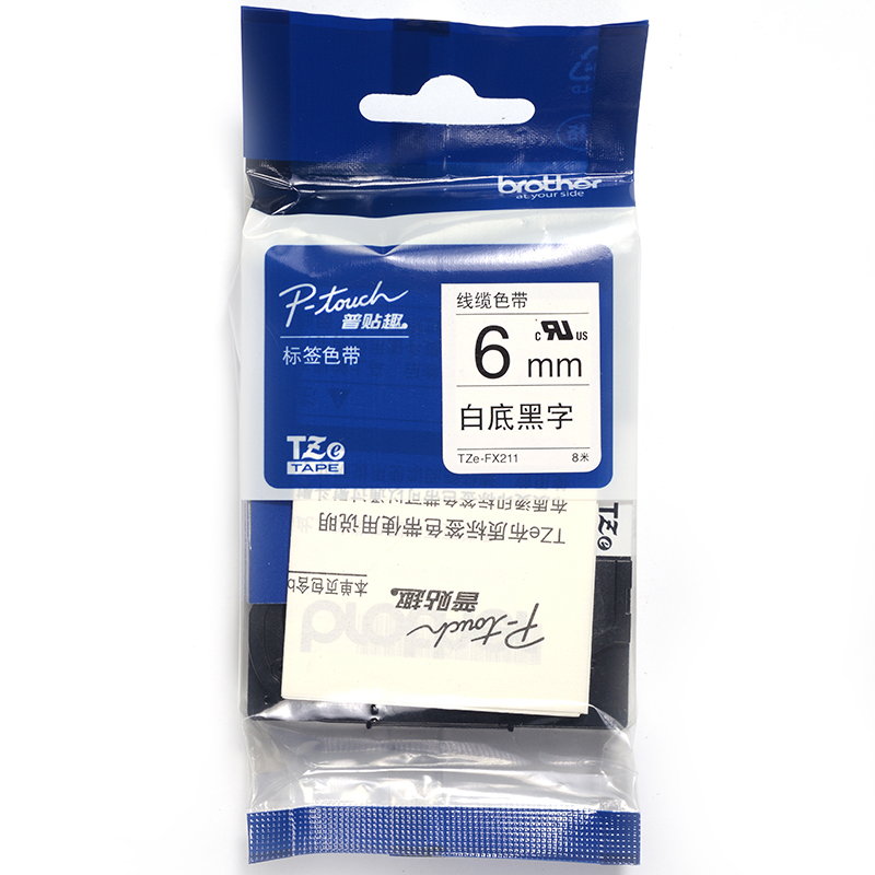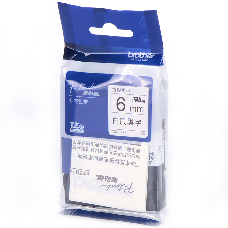 - 兄弟TZe-FX211 6mm线缆白底黑字标签色带(适用兄弟PT-9700/9800/3600/2430/2730/7600/18RZ/2100/2030/D200/E200/1280/1010