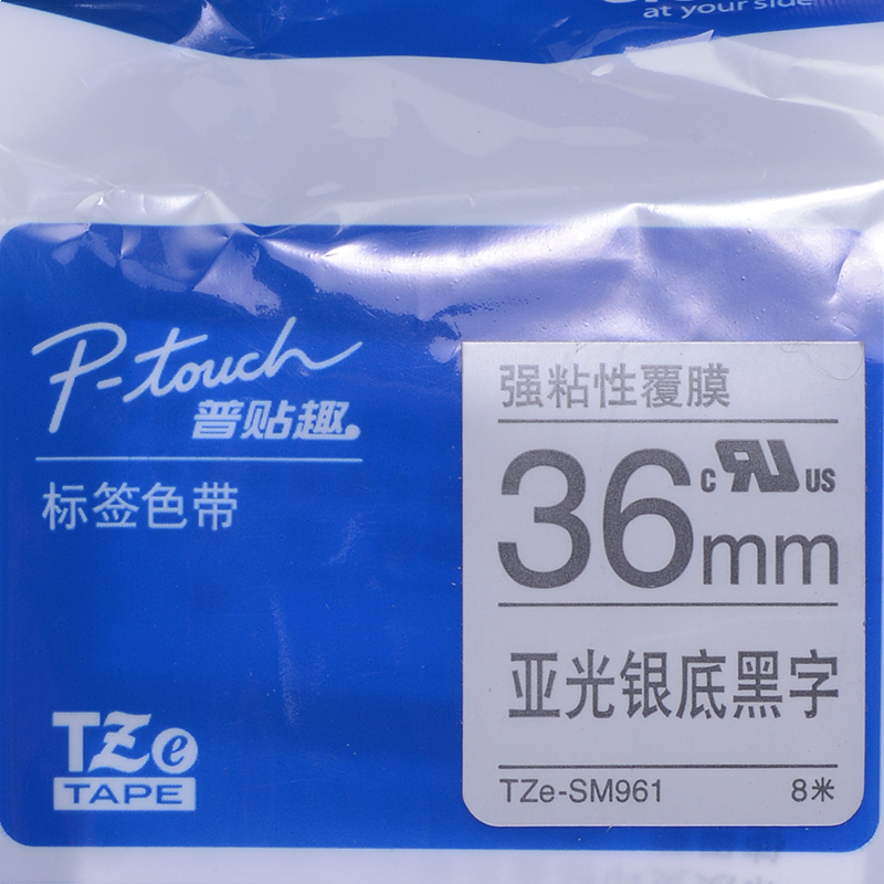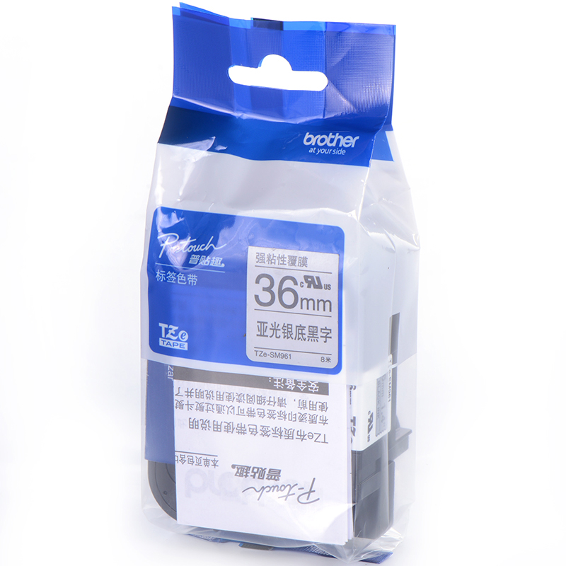 • 兄弟TZe-SM961 36mm强粘性银底黑字标签色带(适用9500/9700/9800/3600