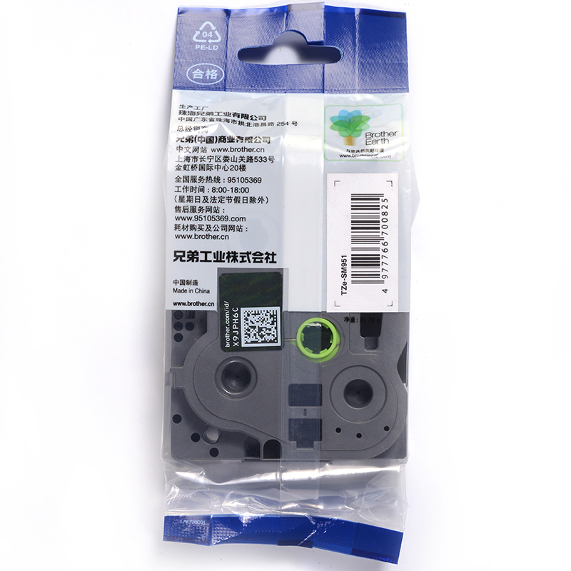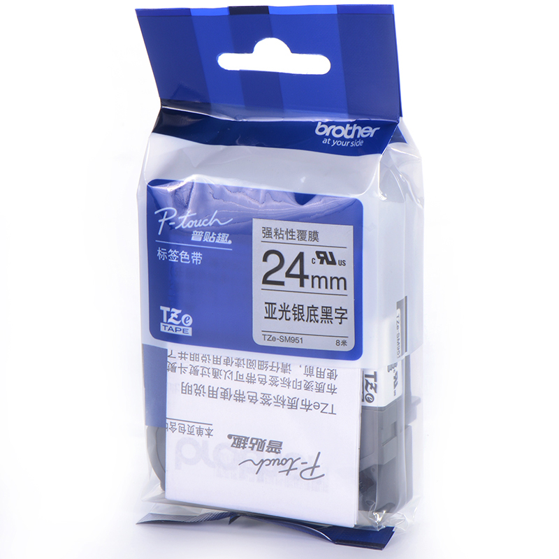 • 兄弟TZe-SM951 24mm强粘性银底黑字标签色带(适用9500/9700/9800/3600/2430)