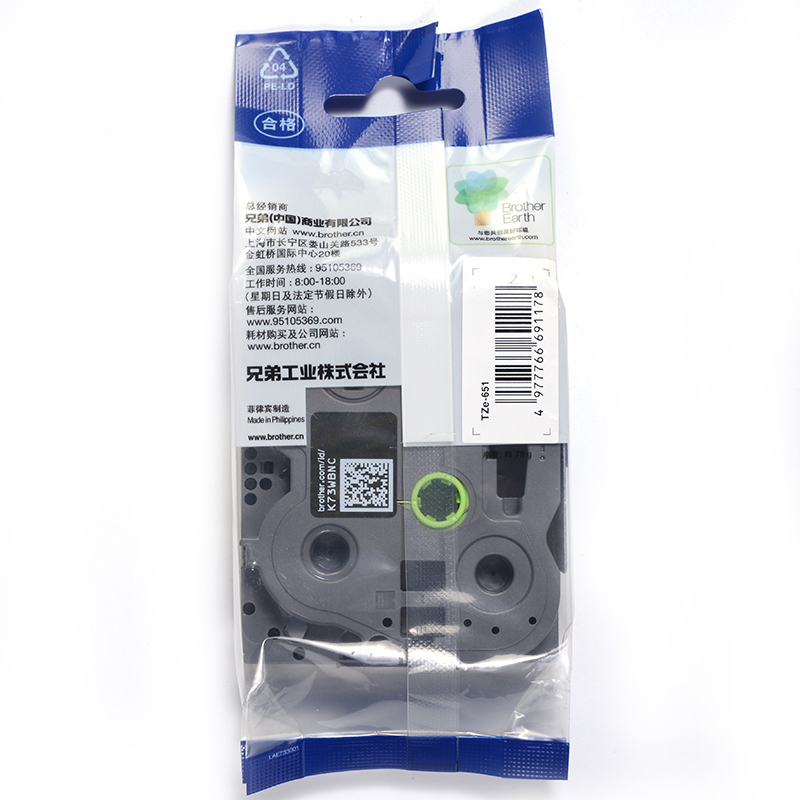 • 兄弟 TZe-651 24mm黄底黑字标签色带(适用PT1650/7600/2700/3600)