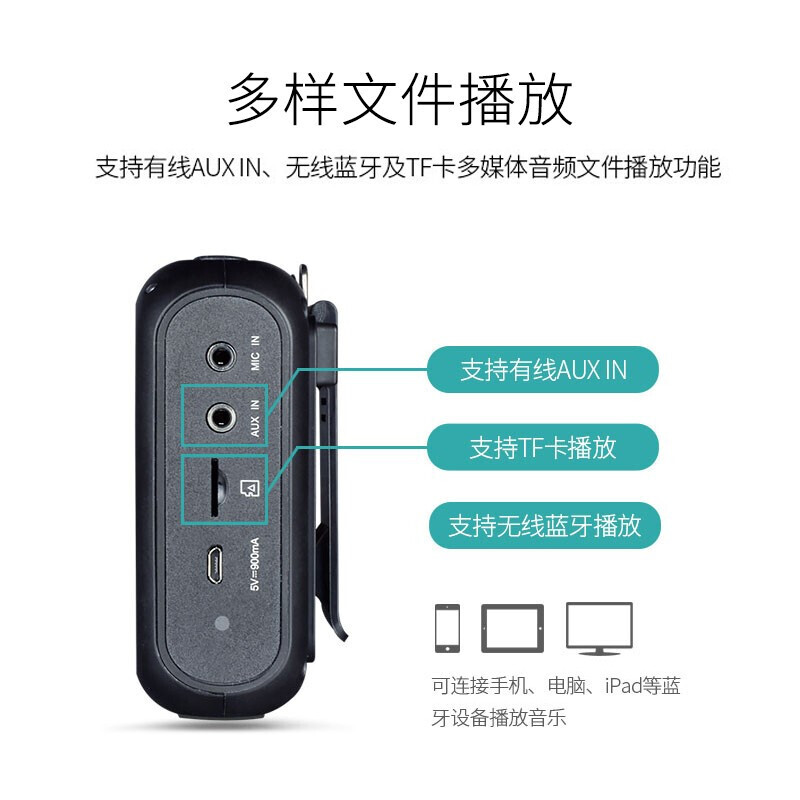 • 得胜E270 小蜜蜂扩音器教学专用迷你蓝牙音响老师上课导游户外专业 黑色标配