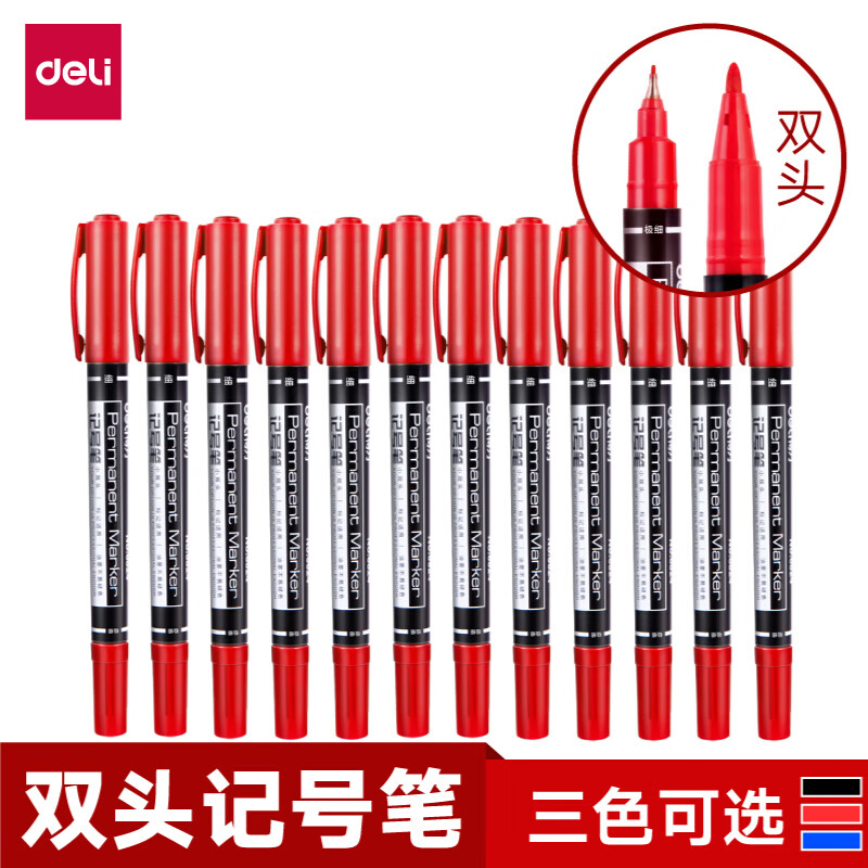 得力(deli) 记号笔小双头油性记号笔 6824红色整盒12支