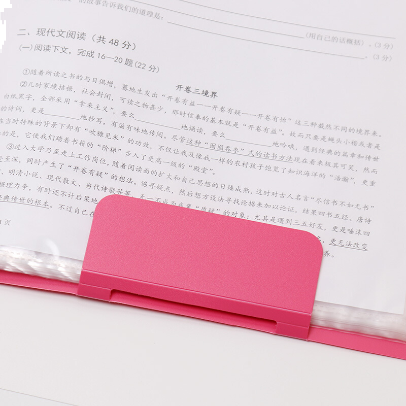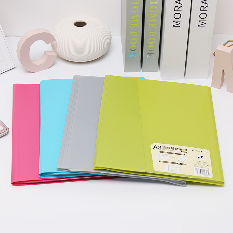 • 齐心A3122/A3/20页 资料册 可装A3尺寸 对折款学生试卷收纳册 活页插袋文件夹文件册 桃红