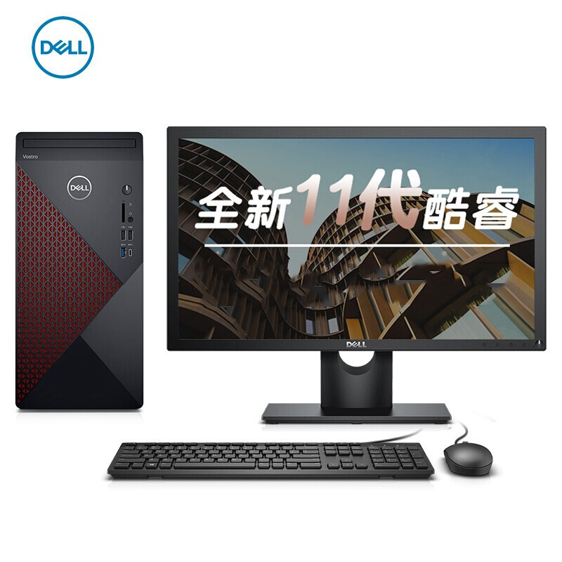 戴尔dell成就5890 办公电脑 商用台式机电脑主机(i7 11700F 16G 256G+2T 2G独显 三年上门)27英寸整机
