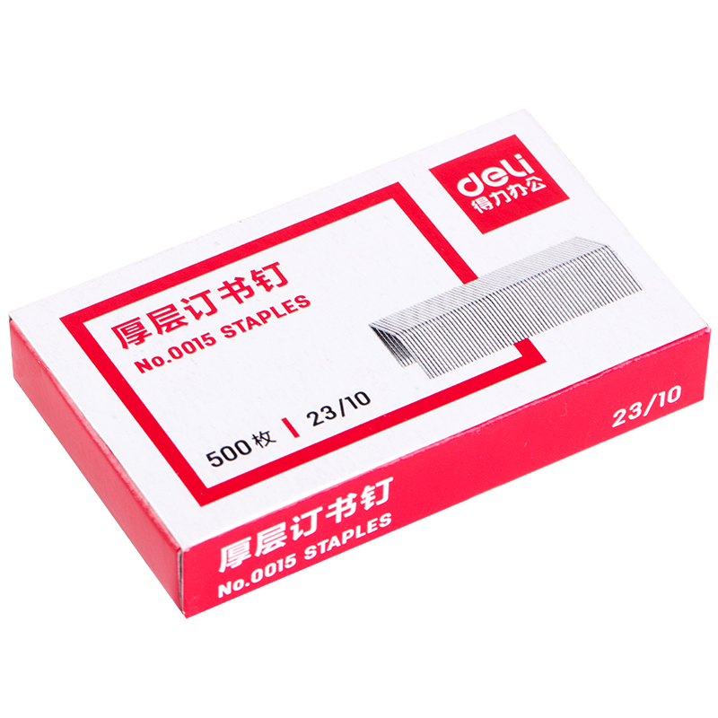 • 得力0015 23/10厚层订书钉/订书针 500枚/盒