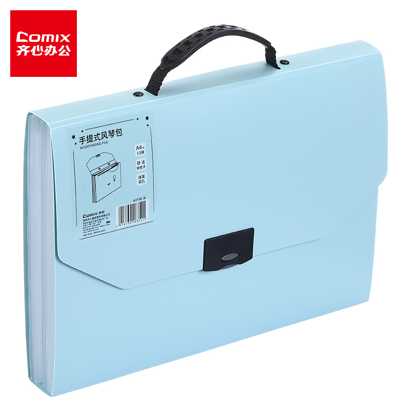 齐心(Comix)手挽13格A4手提文件包资料包风琴包 学生试卷收纳包 A3198 蓝色