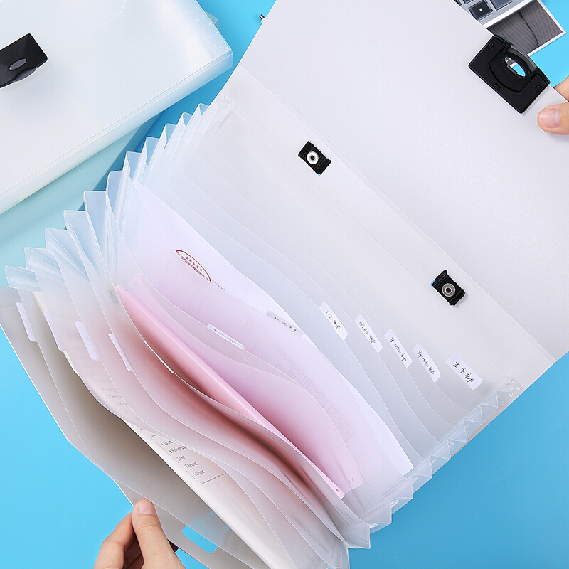 • 齐心A3198 手挽13格A4手提文件包资料包风琴包 学生试卷收纳包蓝色