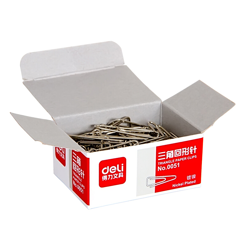 得力(deli) 0051回形针 全金属三角曲别针加厚电镀不易生锈 10盒装