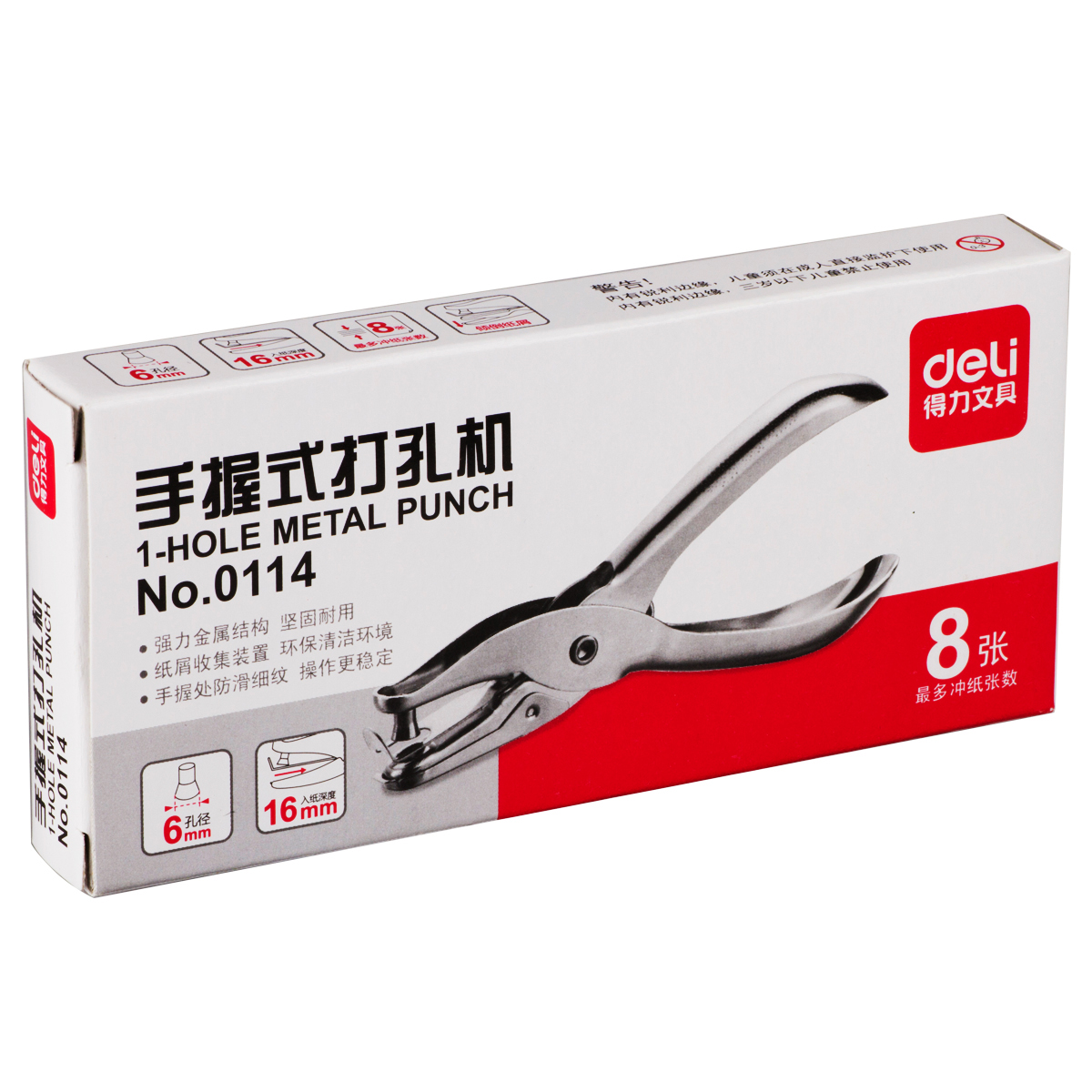 得力(deli) 0114打孔机 打洞器 手握打孔器 单孔 一次可打8页 手握式 0114