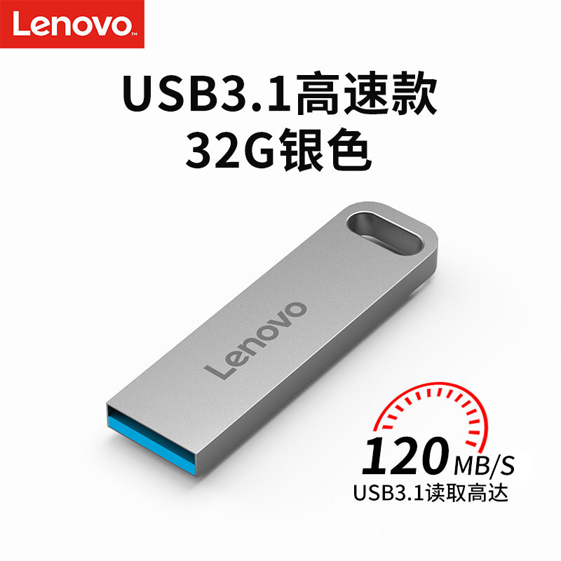 • 联想(Lenovo)32GB USB3.1 U盘 SX1速芯系列银色 金属耐用