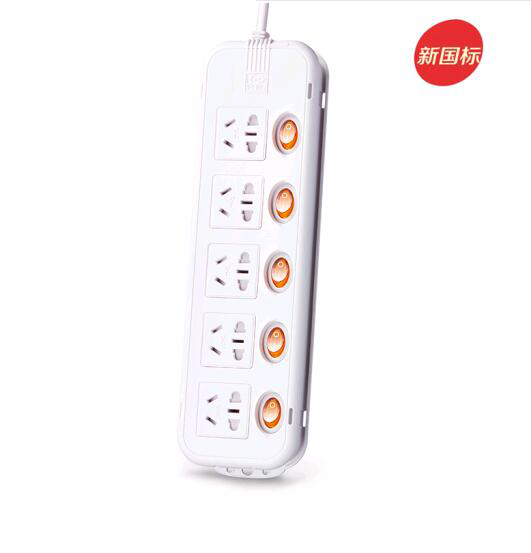 突破T5K5-1.8米 插座 插排插线板5位五孔独立开关分控3米5米10米防过载/儿童保护接线板拖线板/办公家用