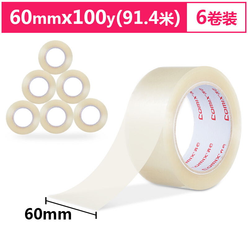 齐心(Comix) 高透明胶带6卷装 宽60mm*长91.4米/卷 封箱胶带 快递打包胶带 办公用品 JP6010-6