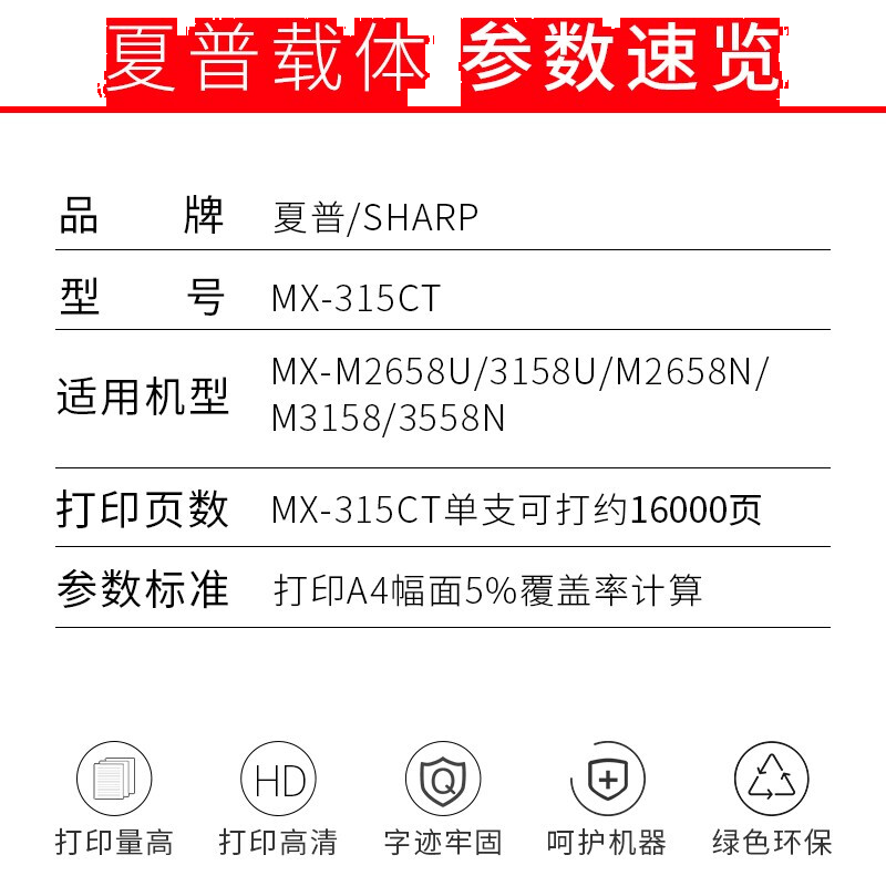 夏普(SHARP)MX-315CT黑色墨粉 适用MX-M2658N/3158N/3558N/含NV或U