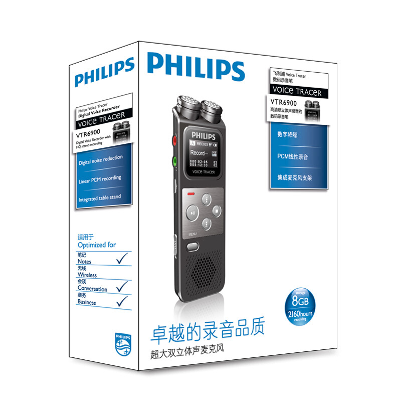 飞利浦(PHILIPS)VTR6900 8G 录音笔 学习记录 会议采访 高清录音