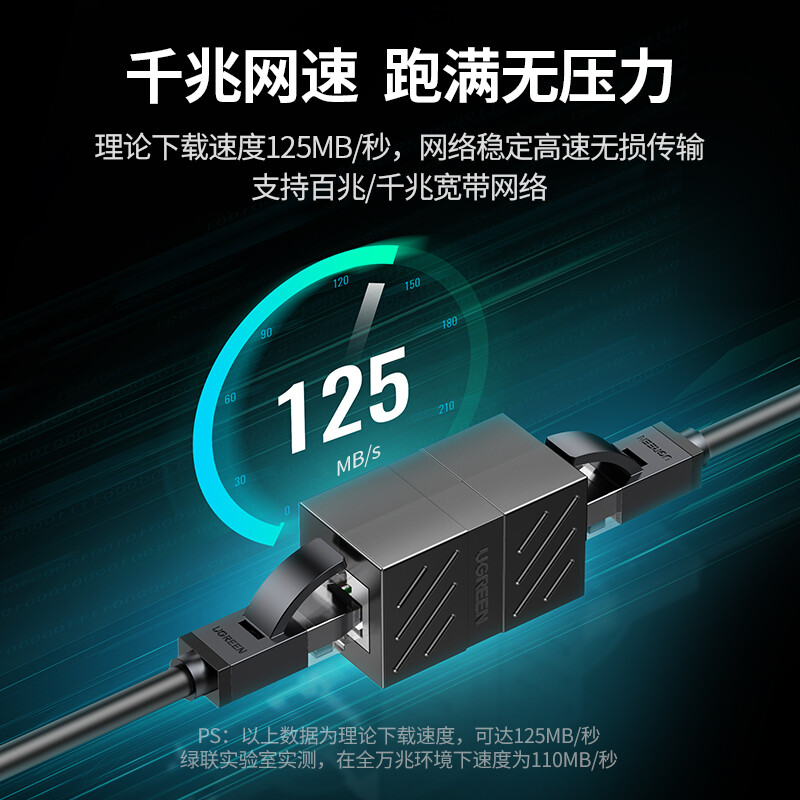 • 绿联 网线转接头 对接头 网络延长连接器 RJ45网口直通头水晶头双通头接口5/6/7类网线通用 黑色10个装