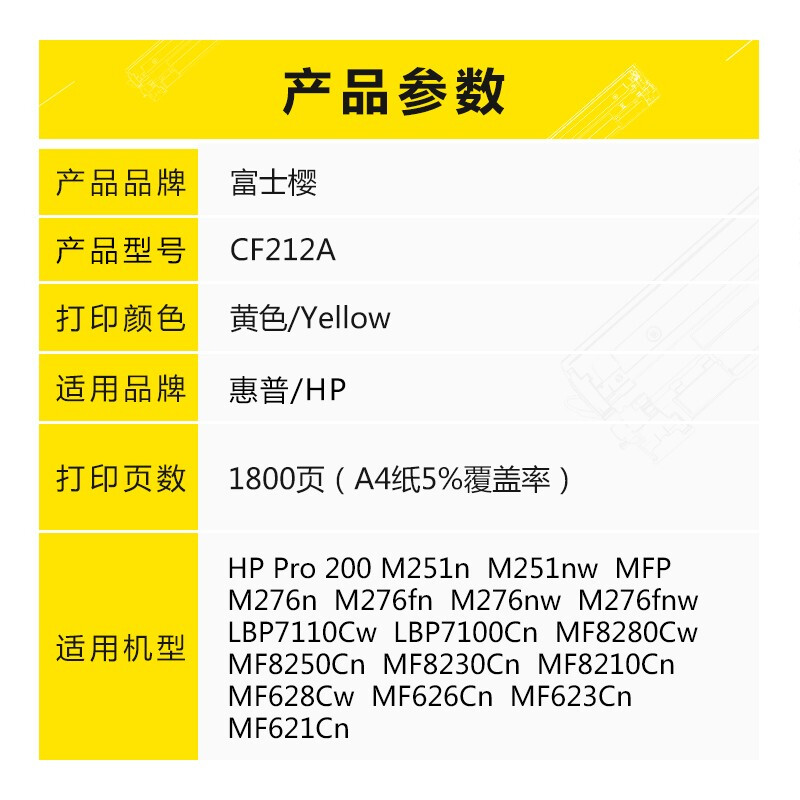 • 富士樱 CF212A黄色硒鼓 131A适用HP惠普Pro 200 M251n M251nw MFP M276n