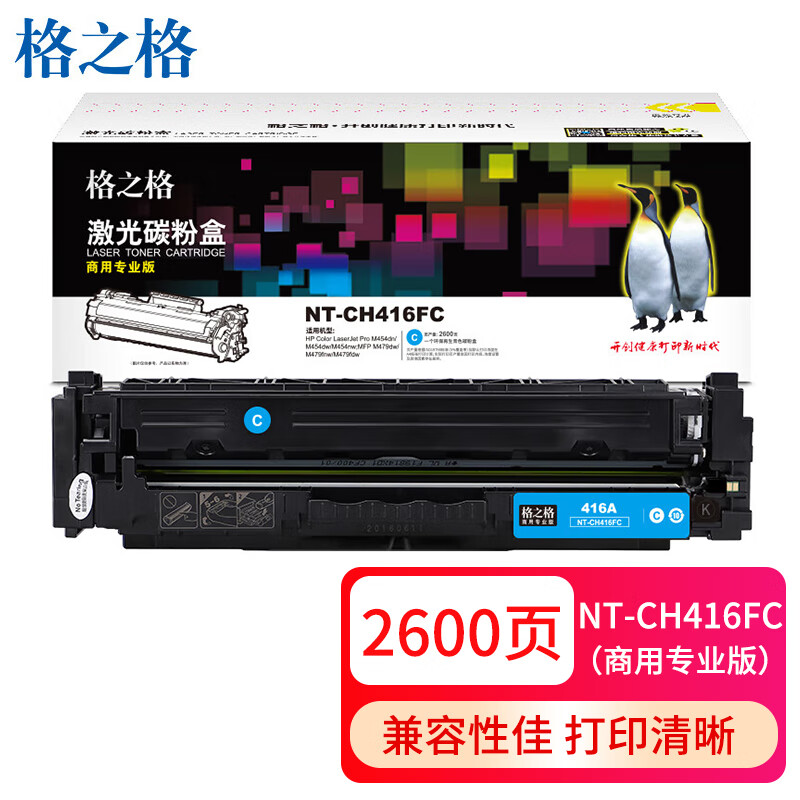 • 格之格 NT-CH416FC青色硒鼓w2041a/416a 适用机型M454dn/M454dw/M454nw/M479dw/M479fnw/M479fdw