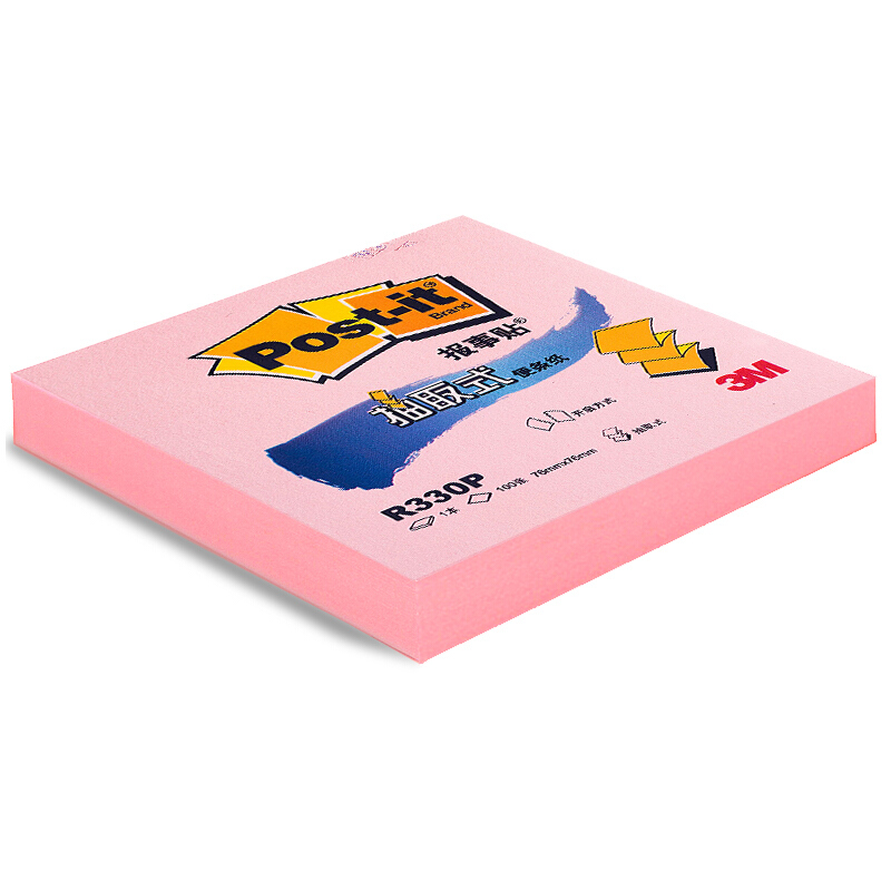 3M Post-it报事贴 R330 抽取式便条纸 可再贴便利贴 便签纸 76*76mm 粉红色 1本