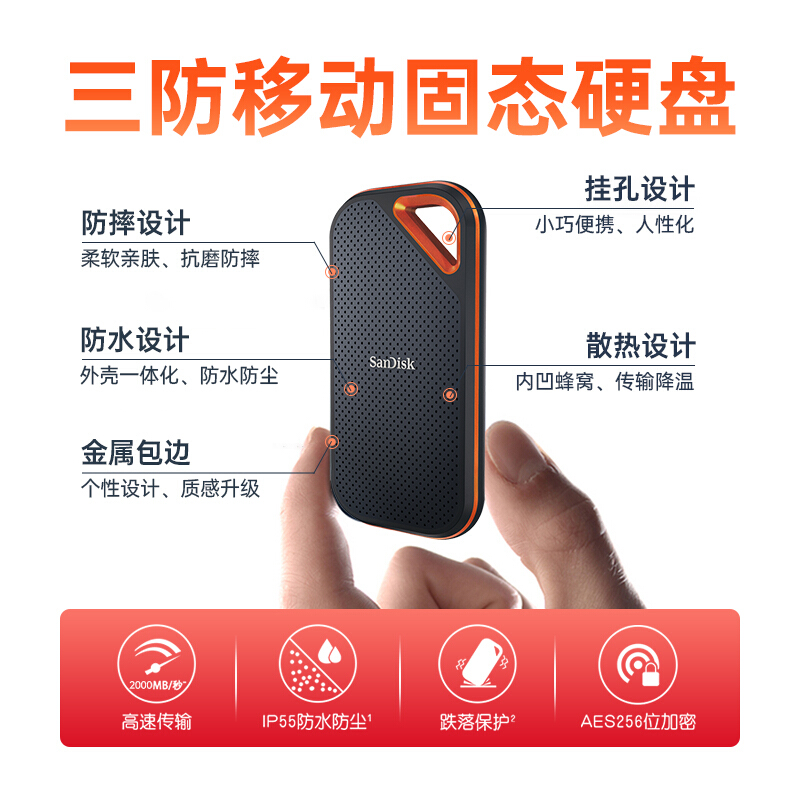 - 闪迪 2TB Nvme移动固态硬盘(PSSD)E81至尊超极速Pro升级版 高速传输2000MB/秒 IP55等级三防保护