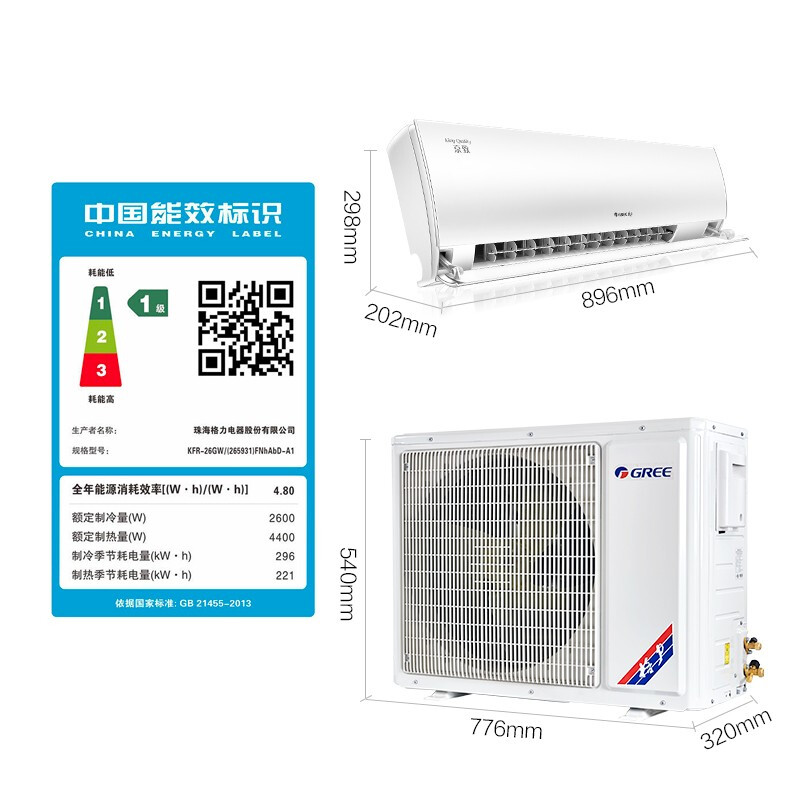 • 格力KFR-26GW/(265931)FNhAbD-A1 大1匹京致一级变频智能冷暖壁挂式卧室空调挂机