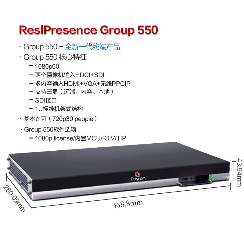 宝利通Group550-720P 视频会议终端 电话会议系统会议远程办公摄像头麦克风