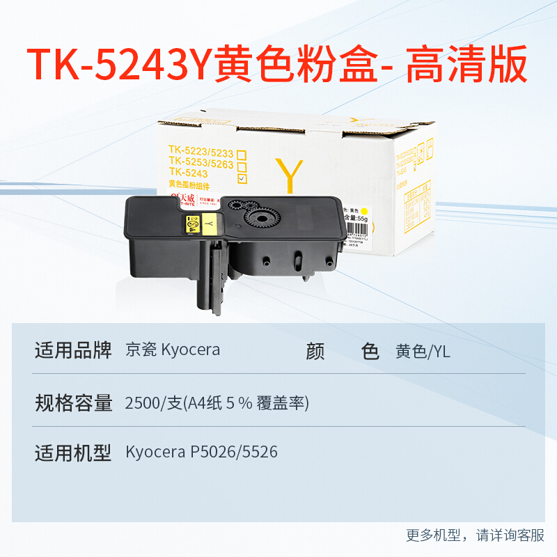 • 天威 TK-5243Y黄色墨粉 适用京瓷Kyocera P5026/P5526