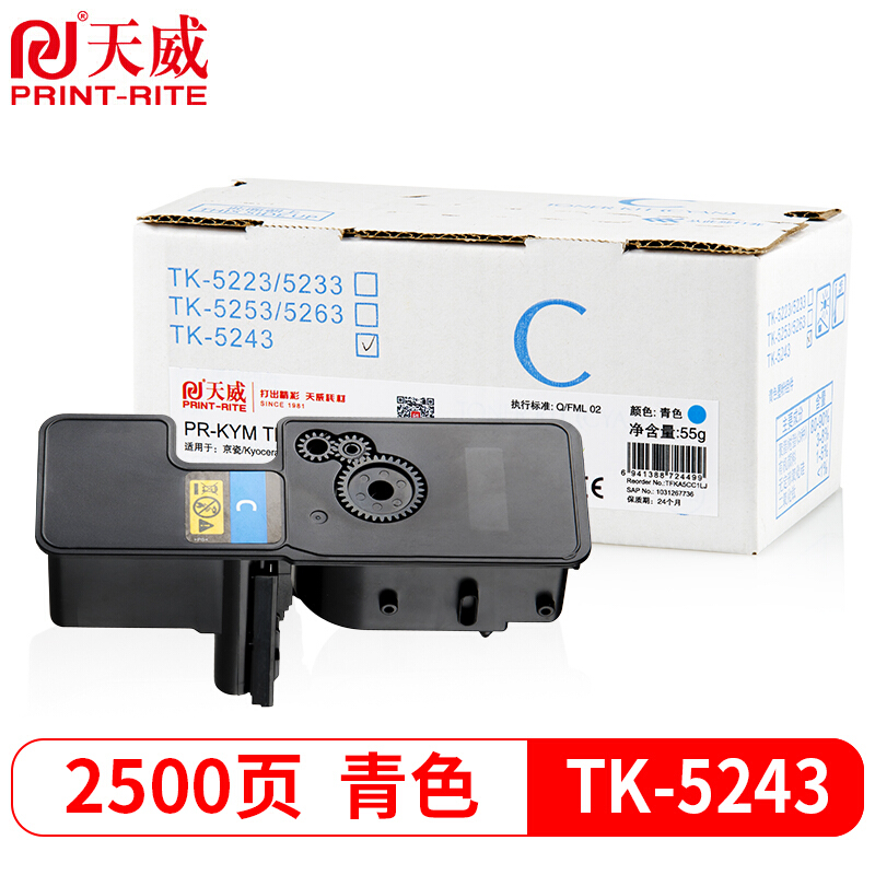 • 天威 TK-5243C青色墨粉 适用京瓷Kyocera P5026/P5526