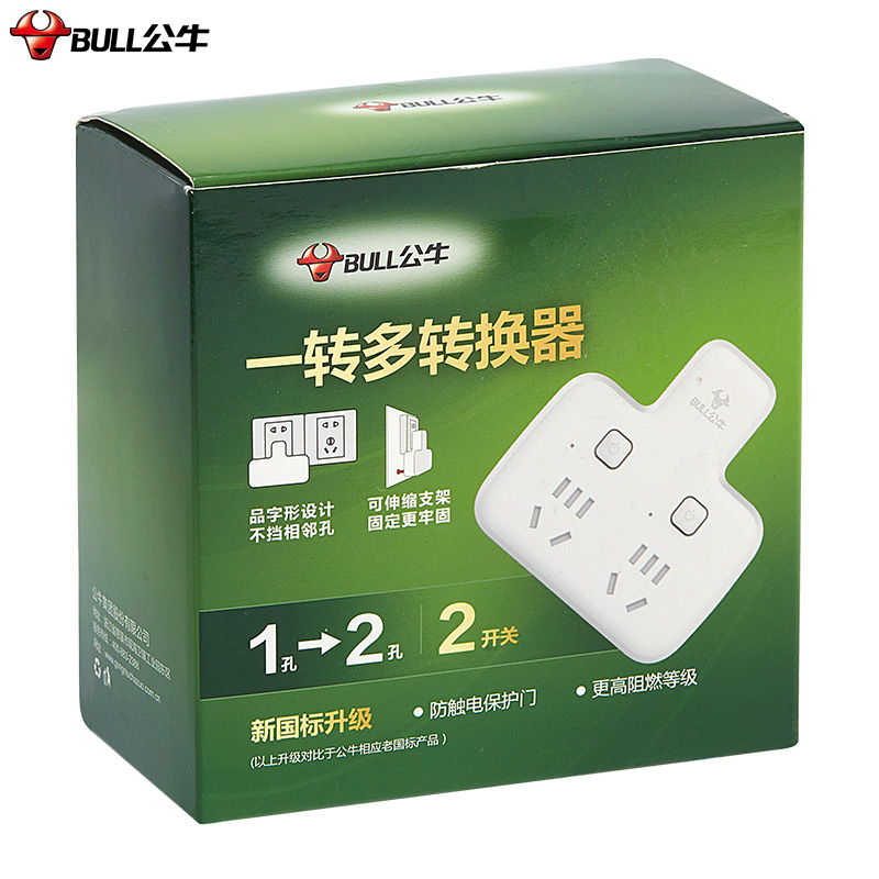 公牛(BULL)GN-96023 品字形一转二插座/转换插头/电源转换器 2位分控无线转换插座