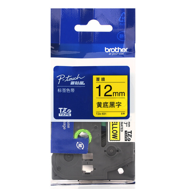 • 兄弟TZe-231 黄底黑字12mm不干胶线缆标签色带