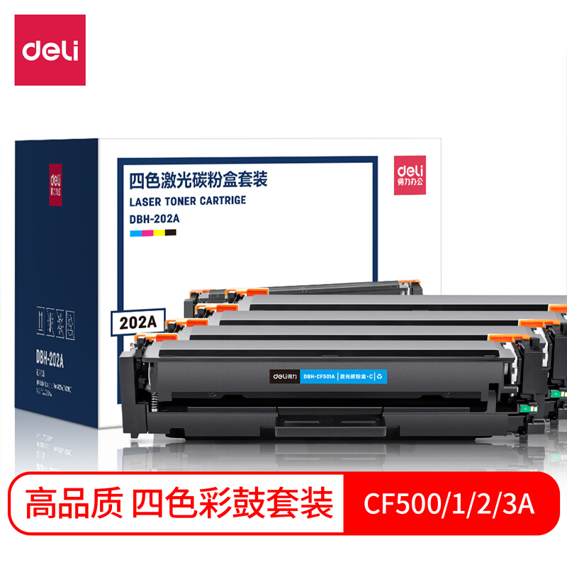 得力(deli) CF500A-503A四色套装硒鼓 202a适用惠普m281fdw m254dw M254NW M281FDN M280NW 彩色打印墨盒带芯片