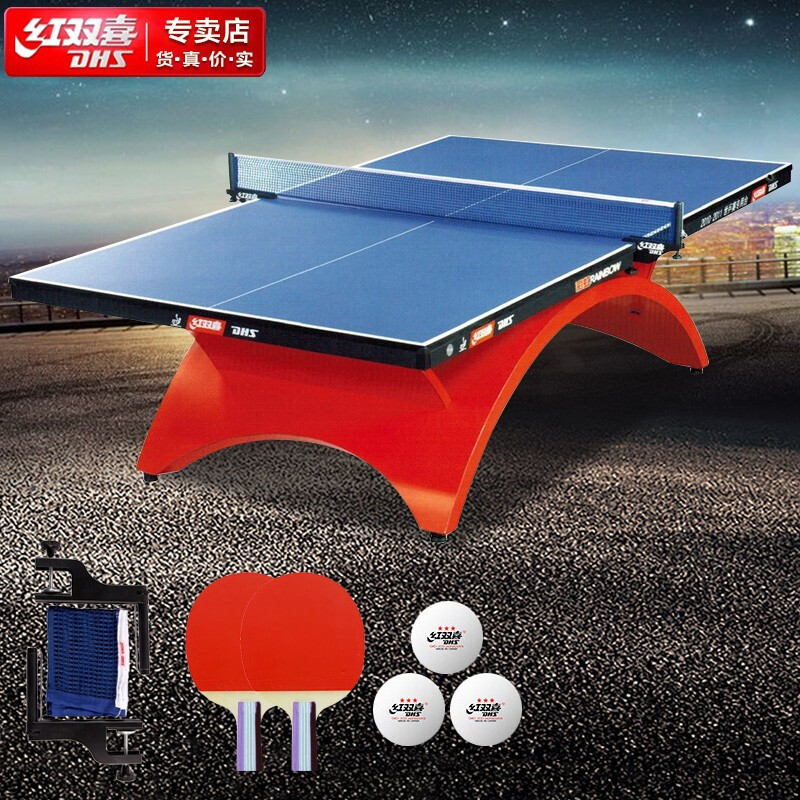 • 红双喜(DHS)TCH-彩虹乒乓球桌专业比赛球台(附高档网架、乒拍、乒球)