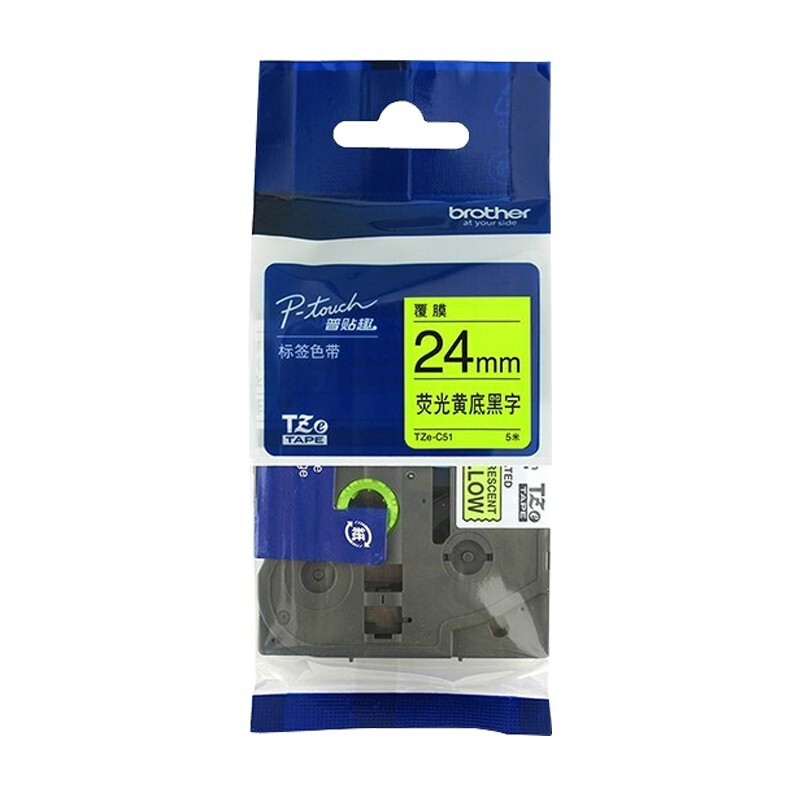 • 兄弟(brother)TZe-C51 24mm 原装色带 荧光黄底黑字 标签打印机色带