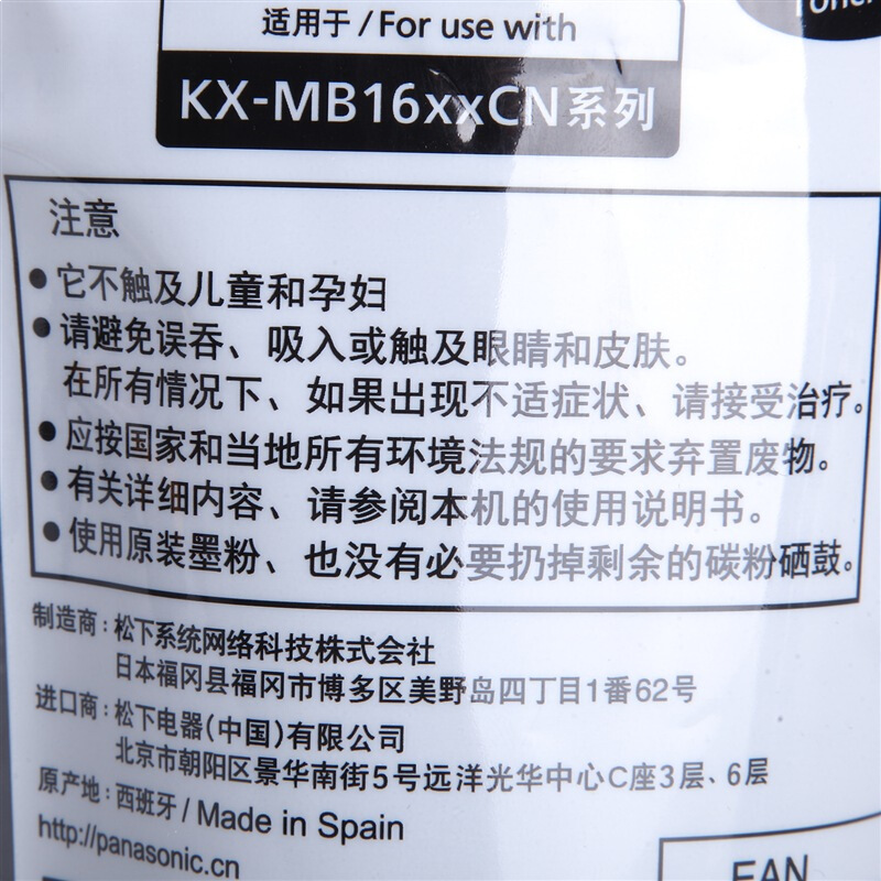 - 松下KX-FAC418CN 黑色墨粉袋 (适用于KX-MB1663/1665/1666/1667/1678/1679CN一体机)
