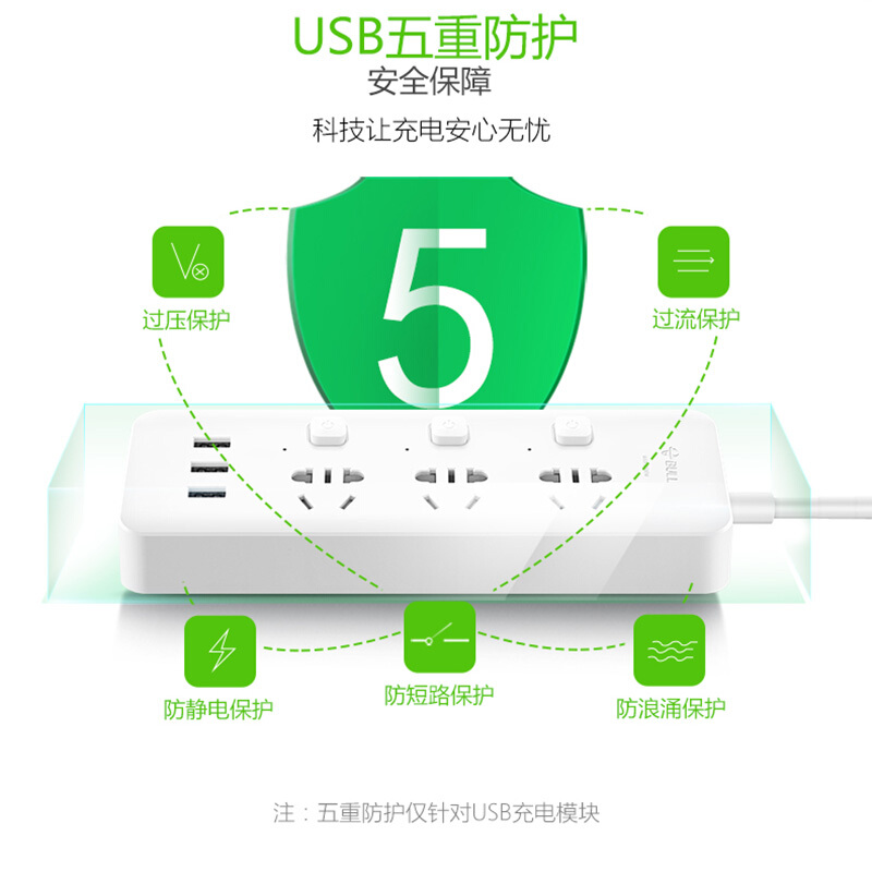 公牛(BULL) 插座/智能USB插座/插排/插线板/排插/接线板/拖线板 GN-B3033 小白USB插座分控全长1.8米