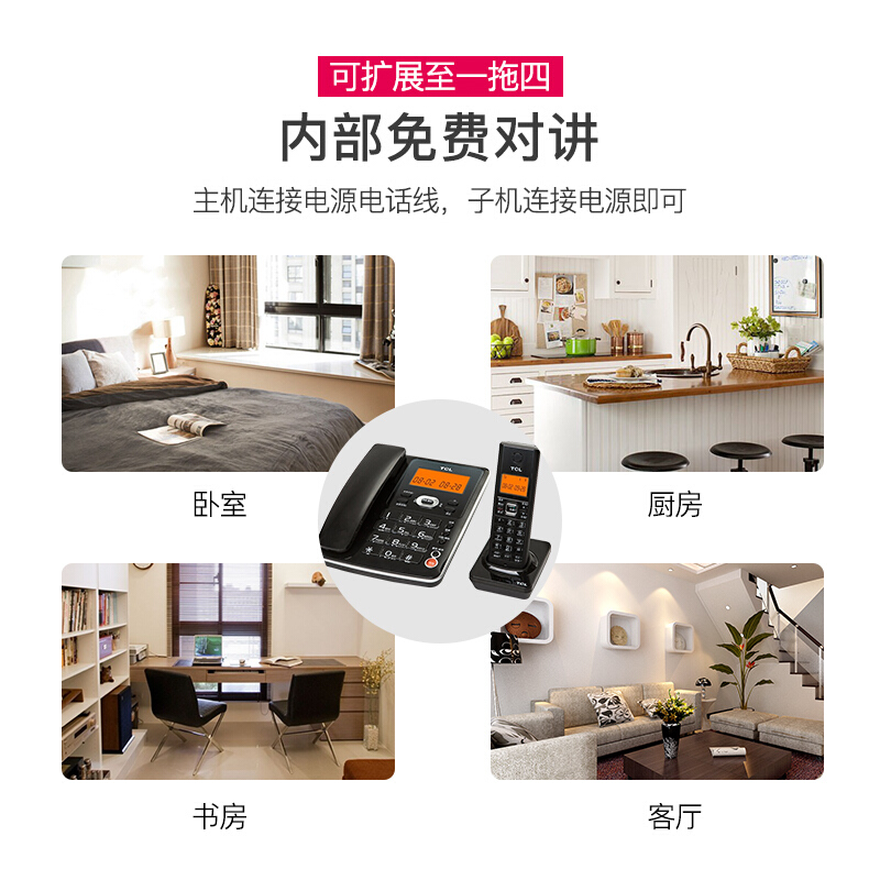 • TCL 无绳电话机D60 无线座机套装一拖一(黑色)