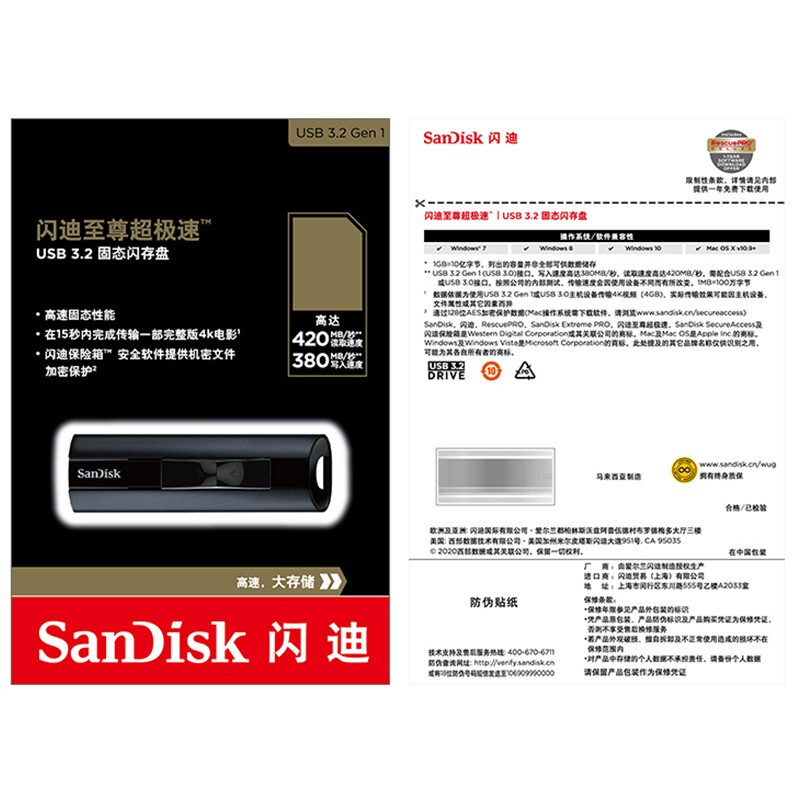 • 闪迪CZ880 固态U盘128GB USB3.2至尊超极速 读速高达420MB/s 写380MB/s