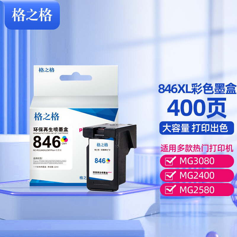 格之格CL-846彩色显墨量墨盒 适用佳能MG2580S MG3080 MG2400 MX498 IP2880S