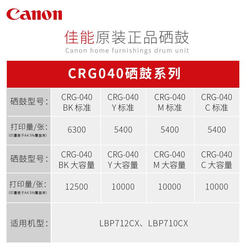 佳能(Canon)CRG-040硒鼓标准四色一套(适用LBP710Cx、LBP712Cx)