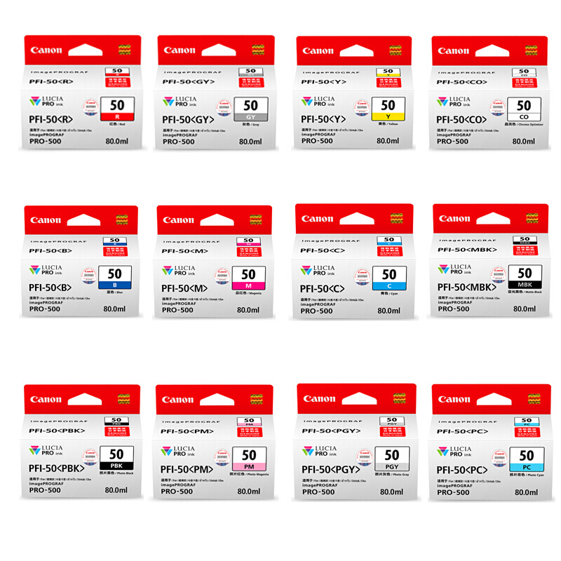 佳能pro-500原装墨盒PFI-50 PRO500打印机墨盒 12色套装