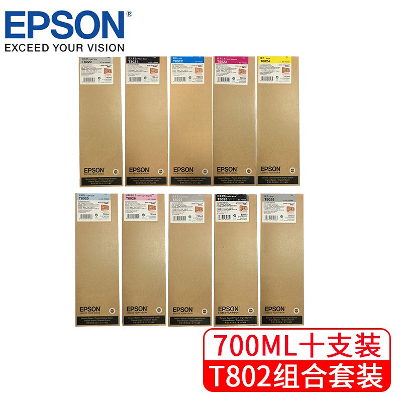 爱普生 EPSON 原装T802十色套装墨盒适用SC-P20080/10080大幅面专业照片打印机墨水