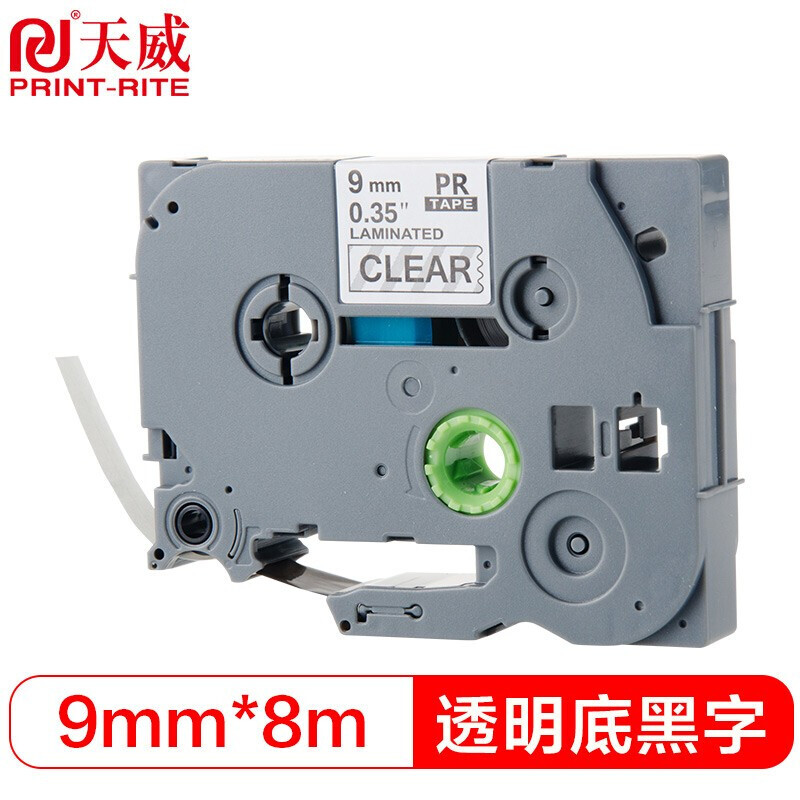 • 天威Tze-121透明底黑字 9mm标签色带适用兄弟标签机色带不干胶标签纸