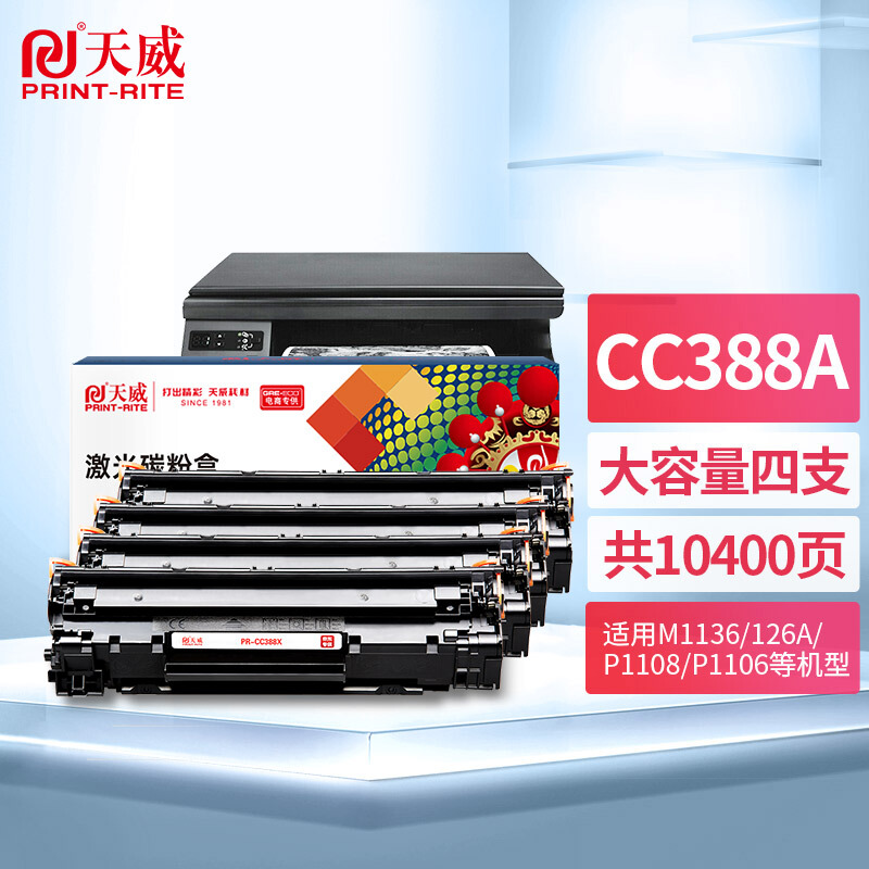 - 天威CC388A硒鼓4支装 88A大容量 适用惠普M126a硒鼓 P1106 P1108 M1136 M126a