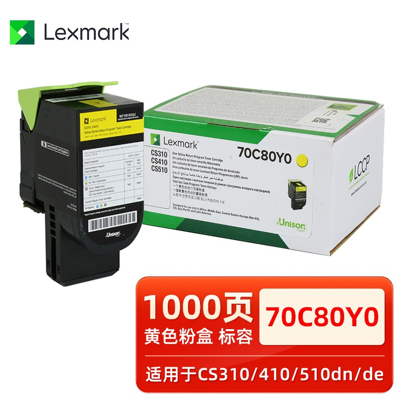 利盟(Lexmark)70C80Y0 黄色碳粉盒(1000页)适用机型CS310/410/510dn/de