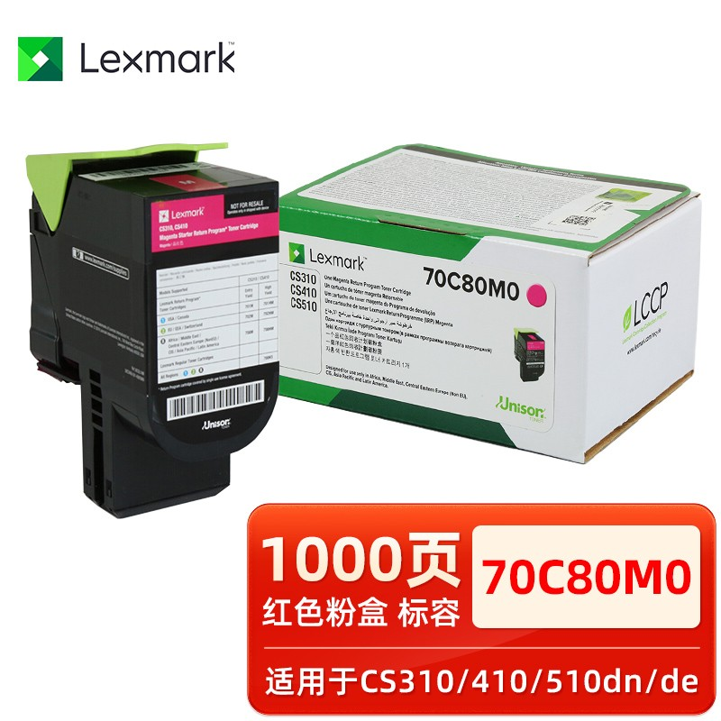 利盟(Lexmark)70C80M0 红色碳粉盒(1000页)适用机型CS310/410/510dn/de