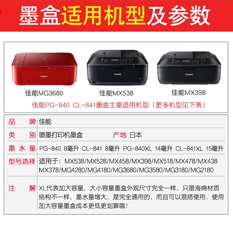 - 佳能(Canon) 佳能PG840/CL841墨盒 适用于MG3680 MG3580 佳能高溶840XL+841XL黑色彩色一套