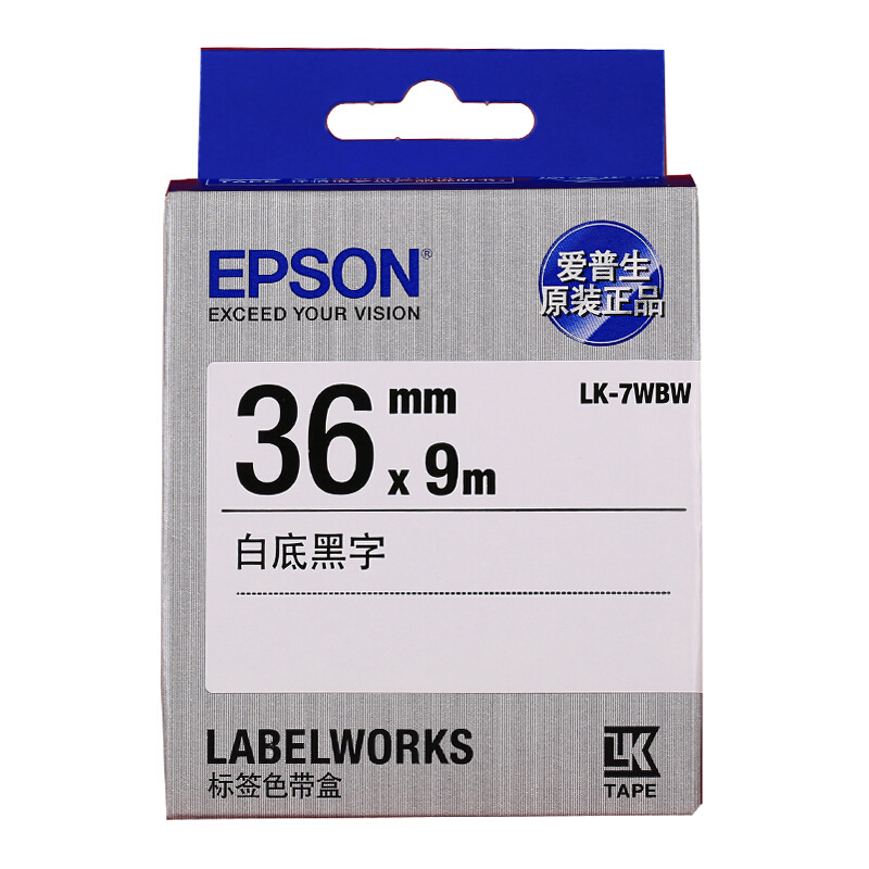爱普生(EPSON)LK-7WBW 强粘标签色带 36mm 白底黑字 (适用LW-1000P/LW-Z900机型)