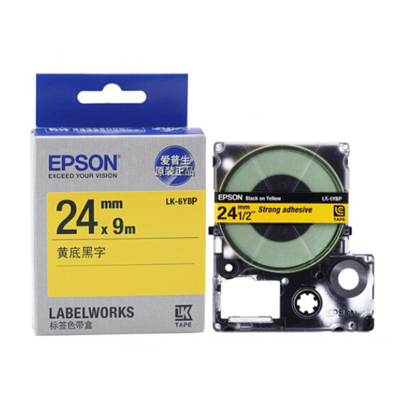 - 爱普生 LK-6YBP 标签机色带 24mm 黄底黑字 (适用LW-600P/LW-700/LW-1000P/LW-Z700/LW-Z900机型)