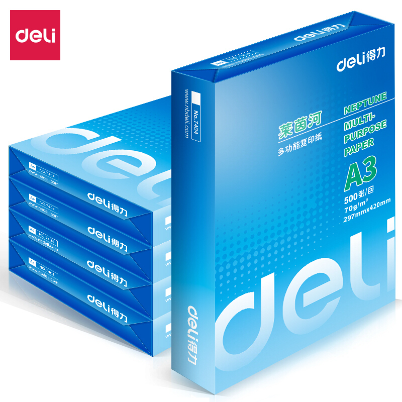 得力(deli)莱茵河 70g A3 复印纸 500张/包 5包/箱(2500张)