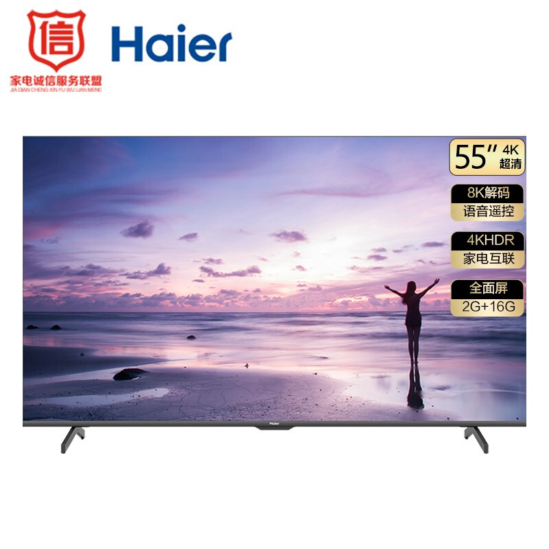 - 海尔 (Haier) LU55D31(PRO) 55英寸4K超高清 声控全面屏 人工智能 LED液晶电视16G大内存